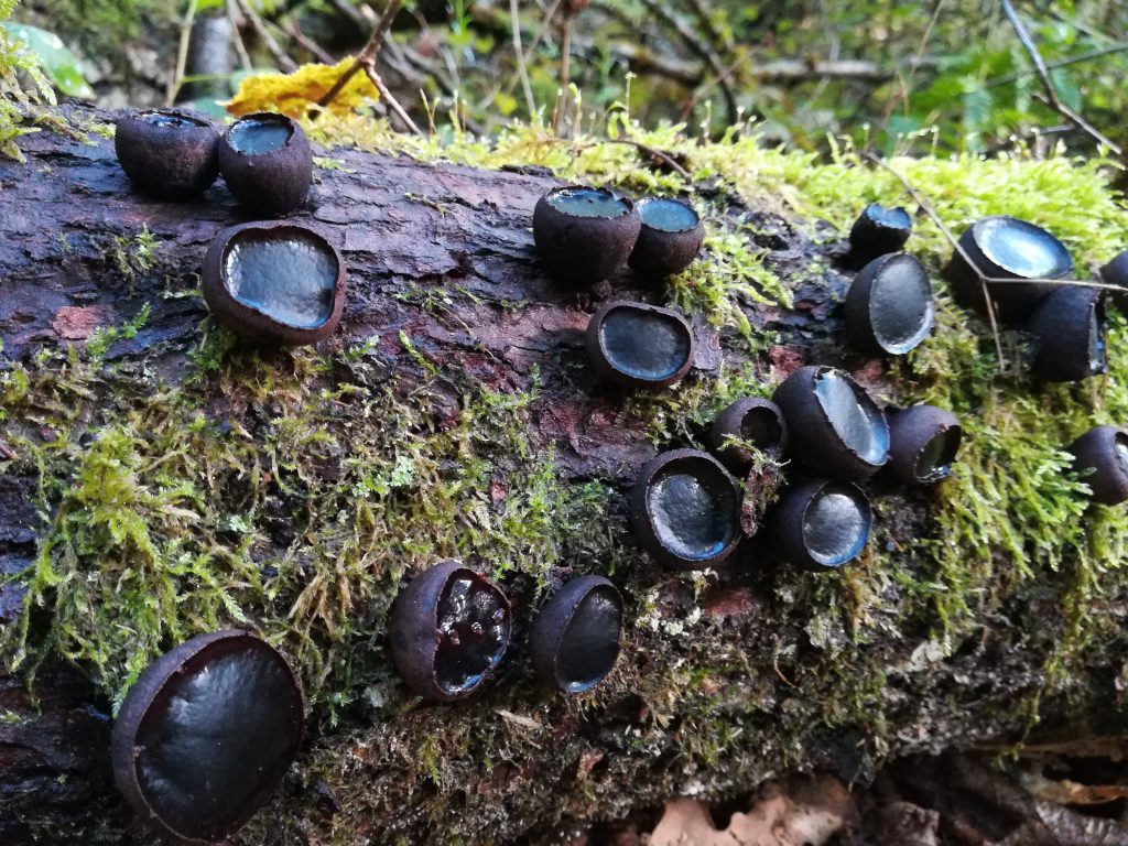 Die Wildschweine hatten in der Nacht an vielen Stellen des Weges die Erde durchwühlt. Wahrscheinlich auf der Suche nach dem, was mir ebenfalls in der Gegend aufgefallen war: Wiesenchampignons. Generell sah ich auf dem Weg durch die feuchten und artenreichen Mischwälder viele teilweise interessante Pilze.