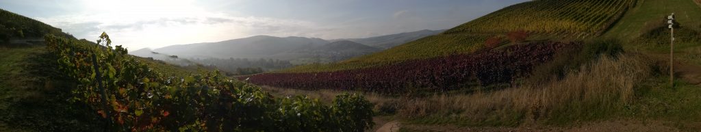 Zu Beginn meines heutigen Wandertages lag mein Weg noch im Nebel verborgen. Dieser wurde dann von der Sonne vertrieben und ich hatte eine herrliche Aussicht auf die Weinberge. Bisher kamen mir die Leute sehr distanziert vor. Es werden sich wohl keine interessanten Begegnungen ergeben, wie ich sie mir vom Jakobsweg versprochen hatte. Aber heute waren die Menschen aufgeschlossener. Sie sprachen vom herrlichen Wetter und gaben die Wetterprognose der nächsten Tage gleich noch dazu. In Monzingen machte ich Rast im Bibelgarten, wo ich von leicht süßen Feigen naschen konnte. Bad Sobernheim war meine heutige Endstation. Im Sommer ist hier ein Barfußpfad geöffnet.